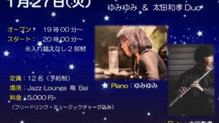 太田和孝(fl)、ゆみゆみ(pf)、赤堀嘉美(b)、石井聡至(ds) のカルテットで下記二カ所に出演します。