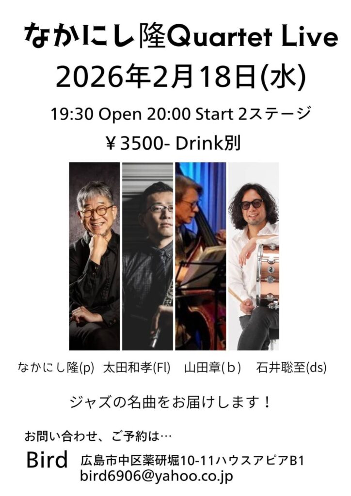 2026.02.18 なかにし隆 Quartet @ Jazz Club Bird