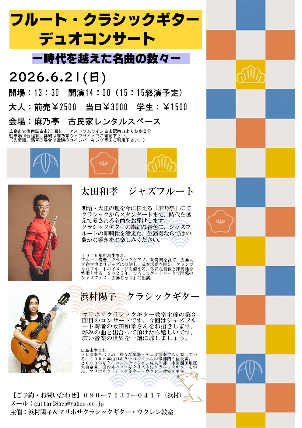 2026.06.21 フルート・クラシックギター デュオ @ 麻乃亭