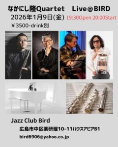 【日時】2026年1月9日(金) OPEN 19:30 / START 20:00 【出演】 なかにし隆 (piano)、太田和孝 (flute)、山田章 (bass)、石井聡至(drums) 【料金】¥3, […]
