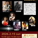 - 2026.02.15 河内しんごバンド @ 唄と音恋路と【日時】2026年2月15日(日) OPEN 14:30 / START 15:00 【出演】 河内しんご(drums)、mico(vo)、ミシェール雅子(vo)、実歳陽子(p)、平木速人(b)、酒井貢(gt,vo)、太 […]