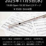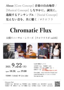 [日時] 2025年6月3日(火) Open 18:30 Start 19:00 (休憩あり、2時間程度) [出演] Chromatic Flux:太田和孝 (flute)、平原雅啓 (violin)、住麻衣子(key […]